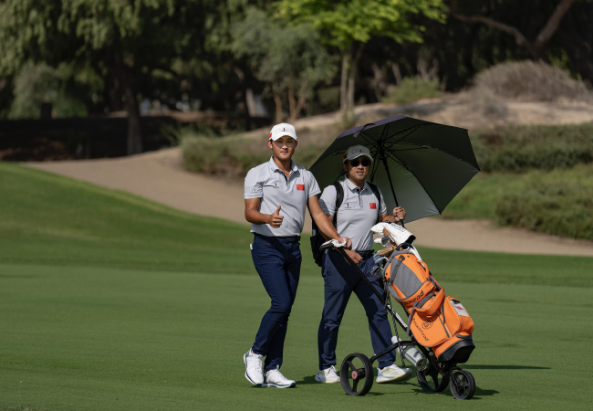 北京时间10月22日,2025年亚太业余锦标赛在迪拜阿联酋高尔夫俱乐部进入赛前最后一个练习日。七位中国内地球员:昌熙桓、侯增昊、王浩一、于瀚杰、曾国林、吴其佑、周子勤,在议会球场进行试场,为正赛做最后的准备。