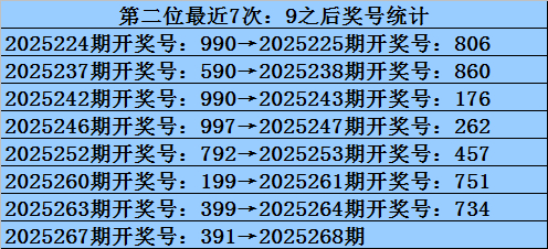 第二位冷码判断:上期奖号为9,遗漏值为3期,目前该位最冷号码为8,遗漏值为41期,本期注意冷码8出现。