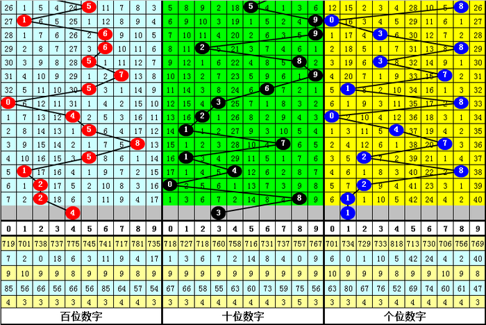 在百位前9次出现号码2之后,下期百位分别开出奖号:7-8-3-3-3-6-5-3-2,其中开出号码个数奇偶比是6:3,大小比是4:5,012路比是5:1:3。