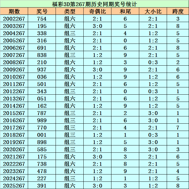 开奖回顾:福彩3D第2025267期开出奖号为391。